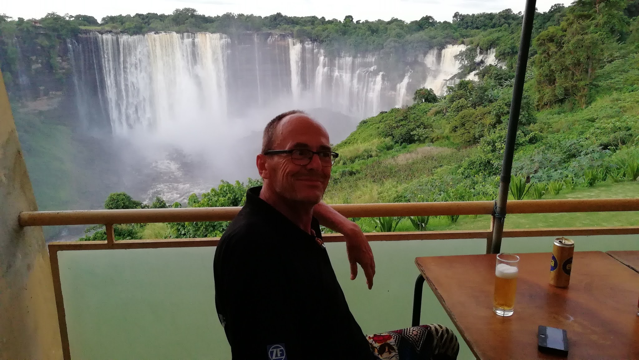 We spend part of the morning on the terrace just in front of the falls while enjoying a small beer that we share.